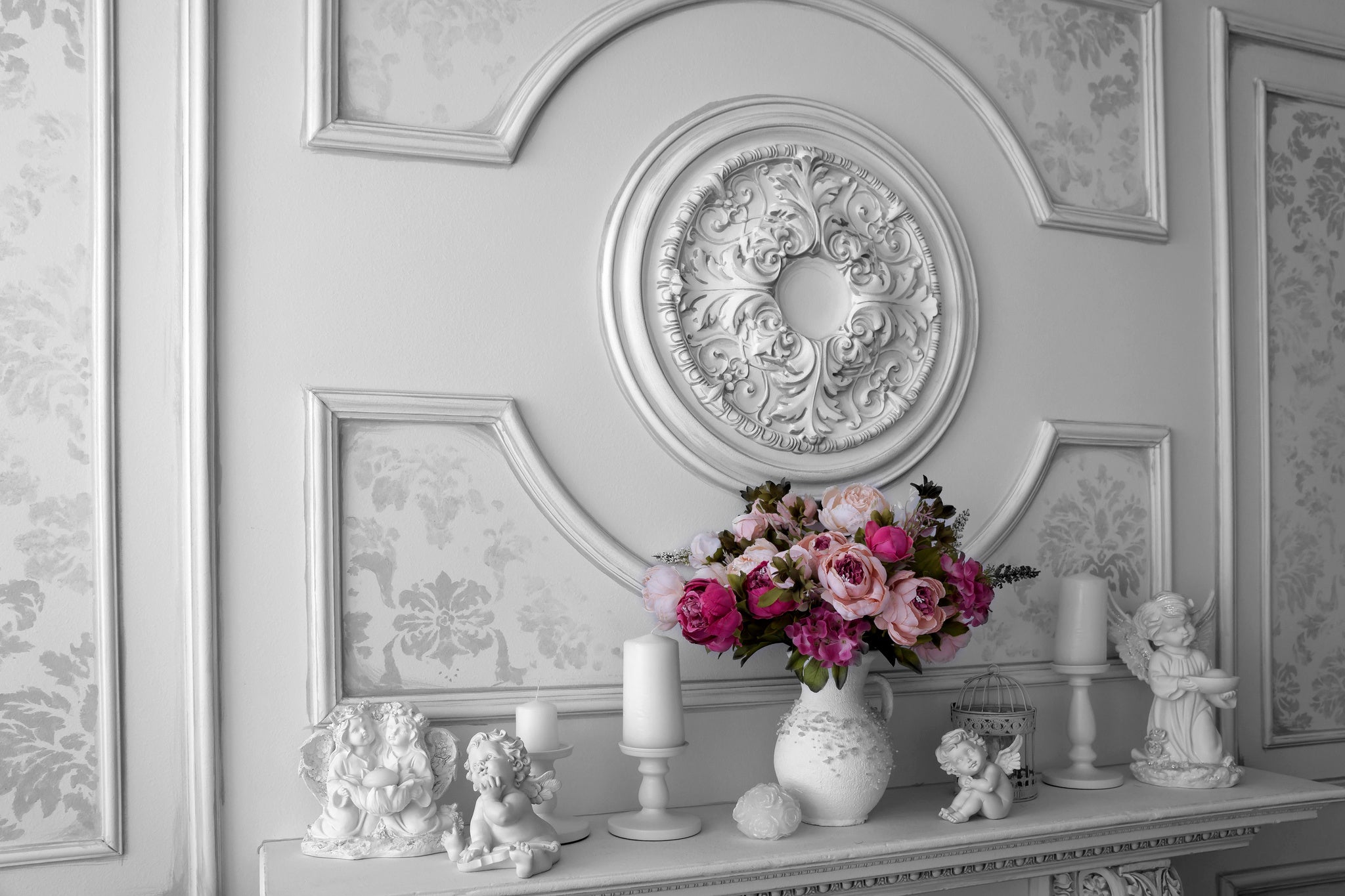 Think pink, coral, flora and fauna, romance, soft fabrics, soft walls, natural fibers, handmade, ceramics, statuary, mom’s and grandma’s treasures for a warm, inviting, sexy and decidedly feminine feel